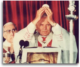 | Juan Pablo II realizado una misa en la Basílica Ntra. Sra. de Luján, en su visita en el año 1982 |